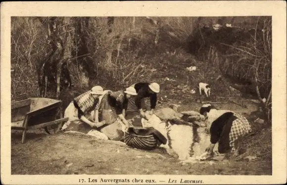Ak Auvergne, Frauen in Trachten waschen Wäsche am Flussufer