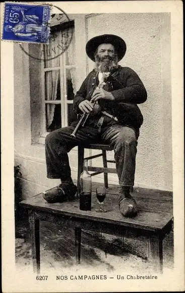 Ak Auvergne, Mann in Volkstracht mit Dudelsack