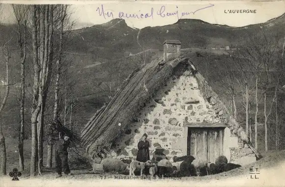 Ak Auvergne Puy de Dôme, Haus in den Bergen, Schafe
