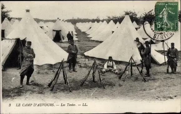 Ak Auvours Champagné Sarthe, le Camp d'Avours, Tentes, Soldats