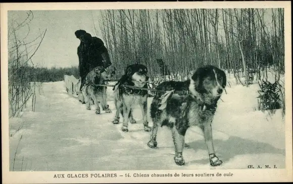 Ak Aux Glaces Polaires, Hunde ziehen ihre Lederschuhe an