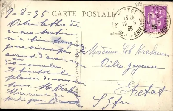 Zustand, siehe Scan, gelaufen, 1935 - ca 14 cm X 9 cm