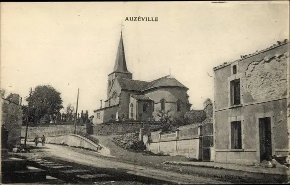 Ak Auzéville Meuse, Stadtpartie mit Kirche
