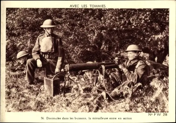 Ak Avec les Tommies, la mitrailleuse entre en action, British troops training in England, MG