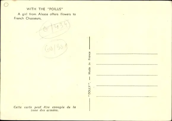 Ak Avec nos Poilus, Jeune Alsacienne offrant des fleurs a nos Chasseurs, II WK