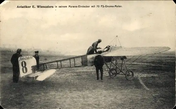 Ak Aviatiker E. Wiencziers in seinem Morane-Eindecker