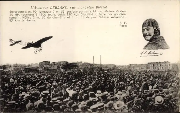 Ak Aviation, Aviateur Leblanc sur monoplan Bleriot