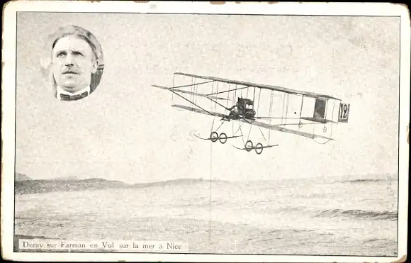 Ak Aviation, Duray sur Farman im Flug über dem Meer in Nizza