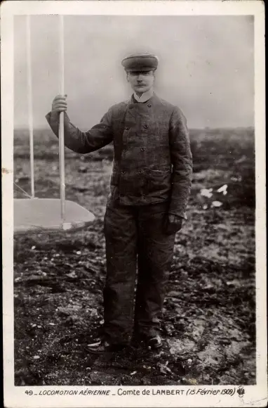 Ak Aviation, Locomotion Aerienne, Aviateur Comte de Lambert, 1909