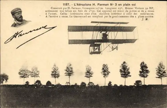 Ak Aviation, das Flugzeug H. Farman Nr. 3 im vollen Flug, Flieger