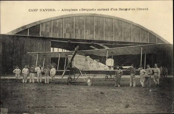 Ak Avord Cher, Camp d'Avord, Aeroplane Breguet sortant d'un Hangar en Ciment