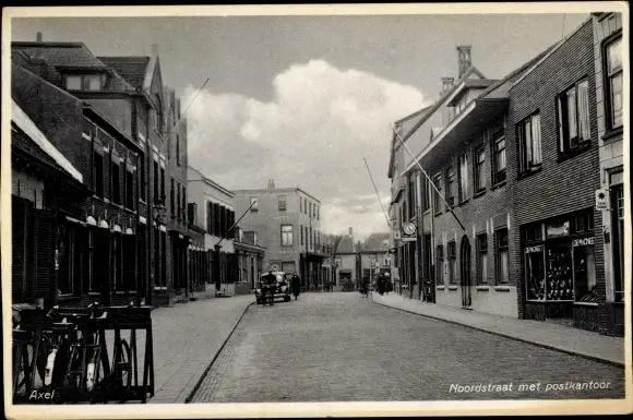 Ak Axel Zeeland, Noordstraat met Postkantoor
