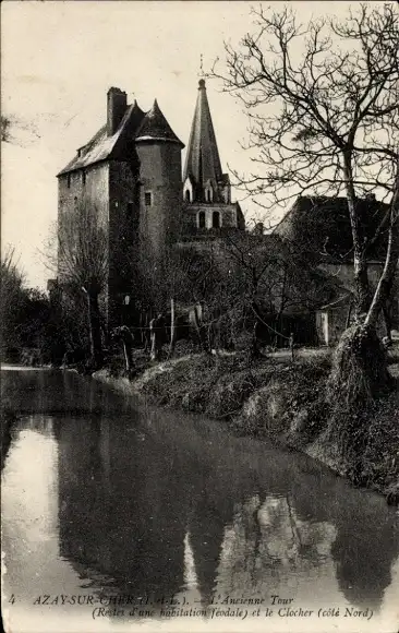 Ak Azay sur Cher Indre et Loire, L'Ancienne Tour, Restes d'une habitation feodale, Clocher