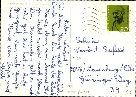 Ak BYJ Puppe, Hummelwerk Spielwaren Oeslau