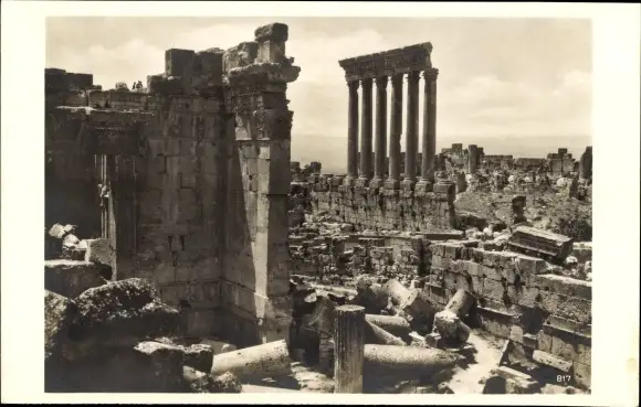 Ak Baalbek Libanon, Tempelanlagen, Ruinen, Mauer, Säulen