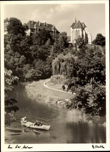 Ak Backnang in Baden Württemberg, Murrpartie, Ruderboot