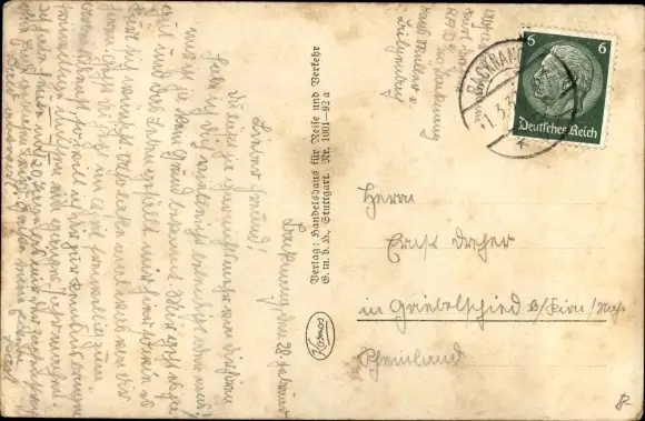 gelaufen 1937, Eckknick rechts unten, sonst guter Zustand
