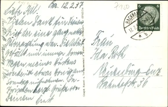 Zustand, siehe Scan, gelaufen, 1937 - ca 14 cm X 9 cm