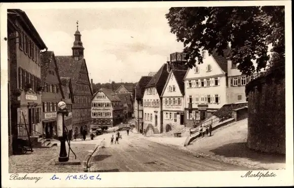 Ak Backnang in Württemberg, Marktplatz, Tankstelle