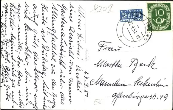 Zustand, siehe Scan, gelaufen, 1951 - ca 14 cm X 9 cm