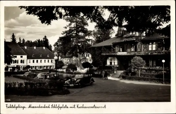 Ak Bad Alexandersbad in Oberfranken, Schlossplatz mit Kurhausrestaurant