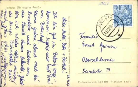 Zustand, siehe Scan, gelaufen, 1958 - ca 14 cm X 9 cm