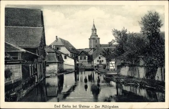 Ak Bad Berka in Thüringen, Der Mühlgraben, Kirche