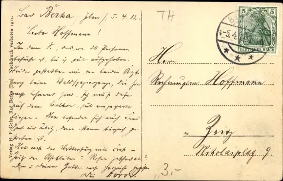 Zustand, siehe Scan, gelaufen, 1912 - ca 14 cm X 9 cm