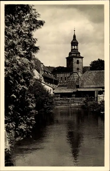 Ak Bad Berka in Thüringen, Partie an der Ilm, Fluss, Kirche