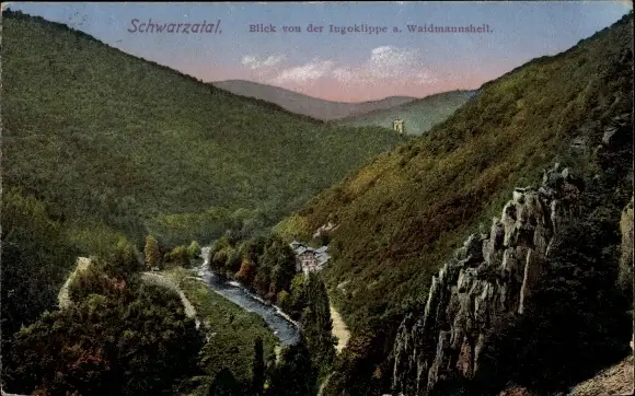 Ak Bad Blankenburg Schwarzatal in Thüringen, Blick von der Ingoklippe auf Waidmannsheil