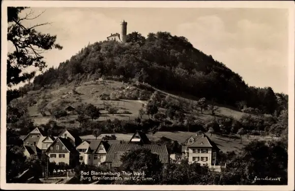 Ak Bad Blankenburg in Thüringen, Burg Greifenstein mit V.C.-Turm