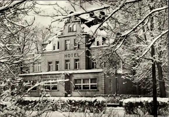 Ak Bad Blankenburg in Thüringen, Durchblick zum Hotel, Weinhaus Eberitzsch, Winter