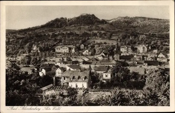 Ak Bad Blankenburg in Thüringen, Panoramaansicht vom Ort mit Ruine Greifenstein