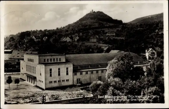 Ak Bad Blankenburg in Thüringen, Stadthalle, Burgruine Greifenstein