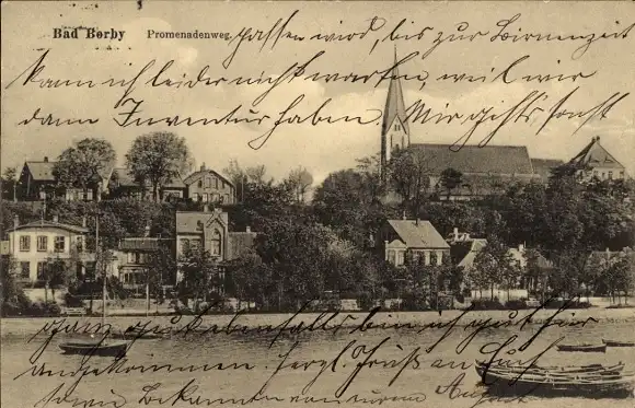 Ak Bad Borby Eckernförde, Teilansicht, Promenadenweg, Kirche