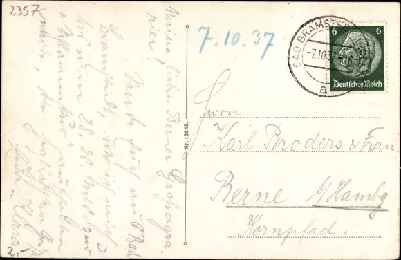 gelaufen 1937, Eckknick links unten, sonst guter Zustand