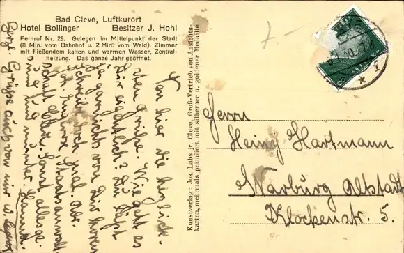 Ak Bad Cleve Kleve am Niederrhein, Hotel Bollinger