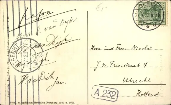 Zustand, siehe Scan, gelaufen, 1912 - ca 9 cm X 14 cm