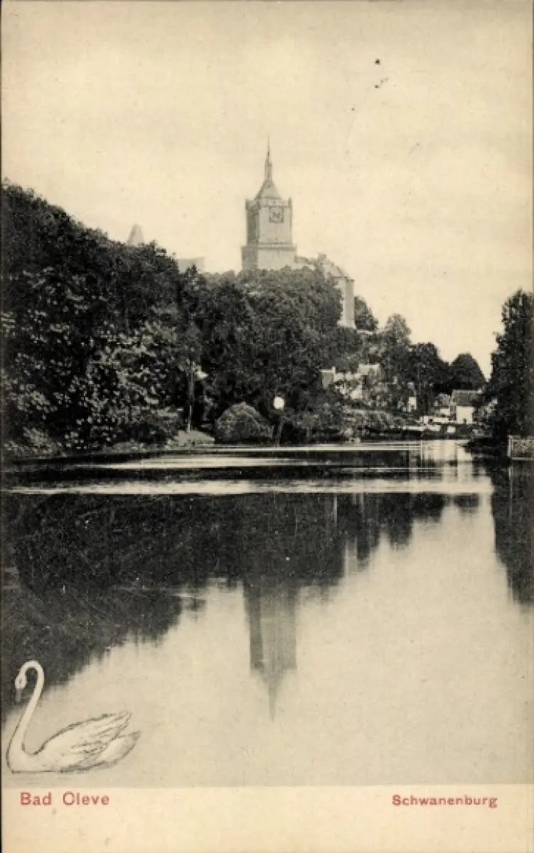 Ak Bad Cleve Kleve am Niederrhein, Schwanenburg, See, Schwan