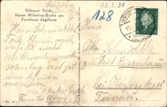 Ansichtskarte,Postkarte,Försterei,Forsthaus,Oberförsterei,Forstwirtschaft,Förster,Jäger,woodsman,woodman,forest, warden,forest, ranger,forest, official,huntsman,huntsmen,rifleman,riflemen,Grünrock,Jägersmann,Waidmann,Weidmann,Wildhüter,Wald