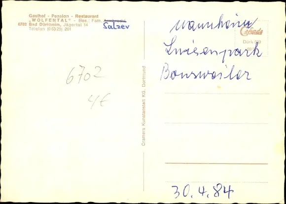 Ak Bad Dürkheim am Pfälzerwald, Gasthof Wolfental, Jägertal 14