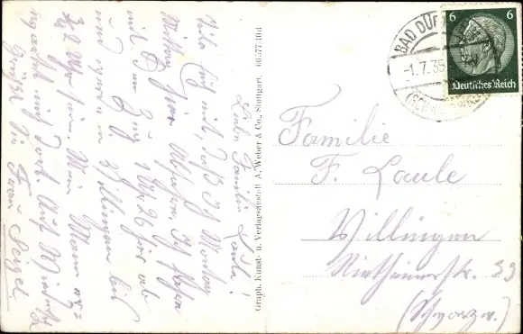 Zustand, siehe Scan, gelaufen, 1935 - ca 14 cm X 9 cm