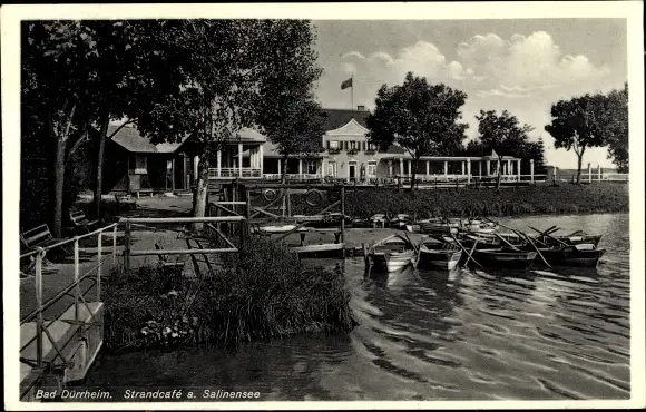 Ak Bad Dürrheim im Schwarzwald, Höhensolbad, Strandkaffee am Salinensee, Boote, Steg