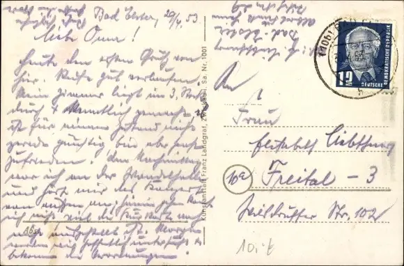 Zustand, siehe Scan, gelaufen, 1953 - ca 14 cm X 9 cm