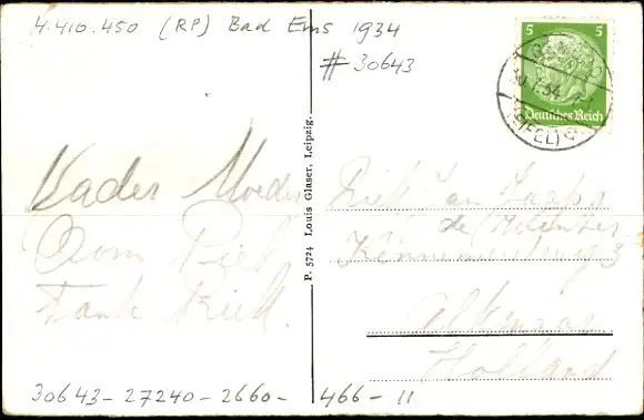 Zustand, siehe Scan, gelaufen, 1934 - ca 14 cm X 9 cm