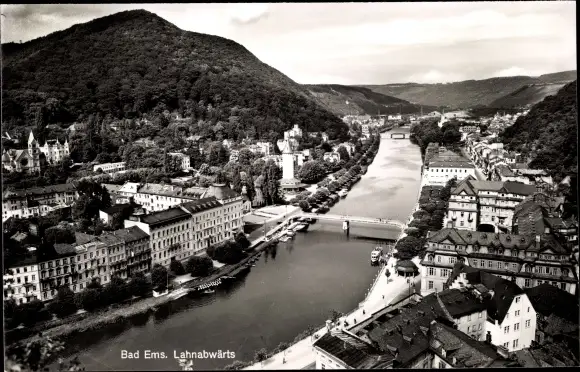 Ak Bad Ems an der Lahn, Blick Lahnabwärts, Luftbild