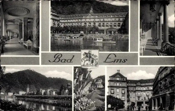 Ak Bad Ems an der Lahn, Boote, Terrasse