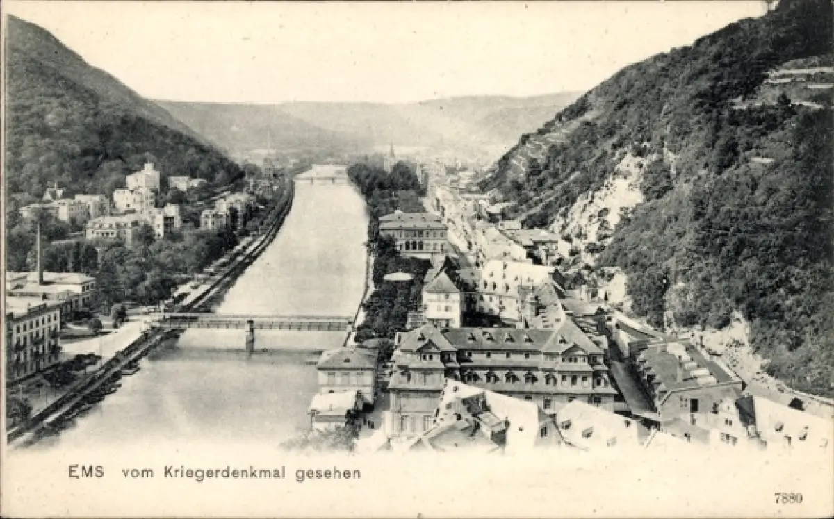Ak Bad Ems an der Lahn, EMS, vom Kriegerdenkmal gesehen, Fluss, Berge, Stadtansicht