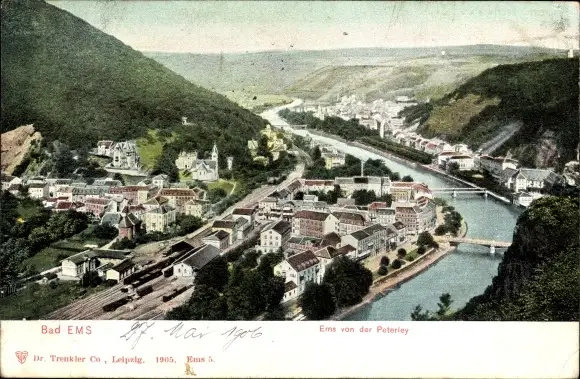 Ak Bad Ems an der Lahn, Ems von der Peterley
