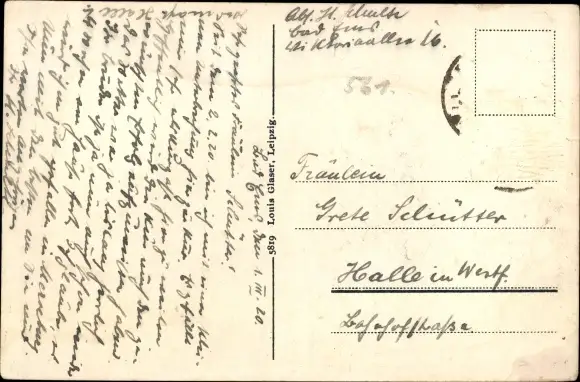 Zustand, siehe Scan, gelaufen, 1920 - ca 14 cm X 9 cm
